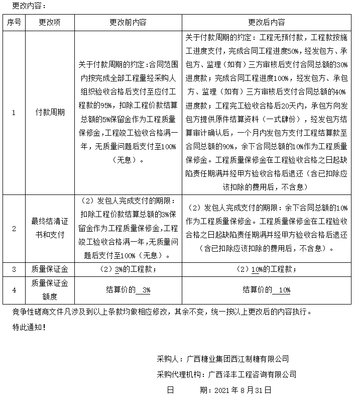 下一篇:广西泽丰工程咨询有限公司关于黔江制糖有限公司新增白砂糖自动装包码垛系统(C标:配套土建、消防、电气和二次装修工程等)(项目编号:GXZF-2021009ZB)竞争性商量文件更改通知(一)